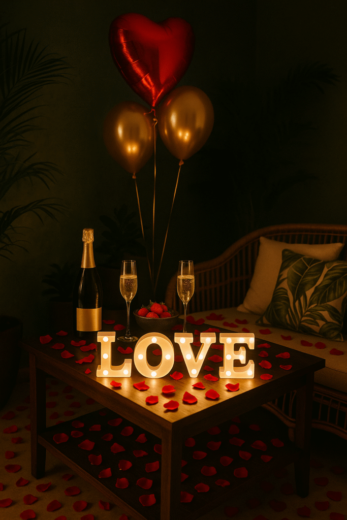 Szampan lub wino, strefa wellness z opcją masażu tylko na wyłączność. Truskawki, kwiaty a może potrzebujesz jeszcze czegoś?